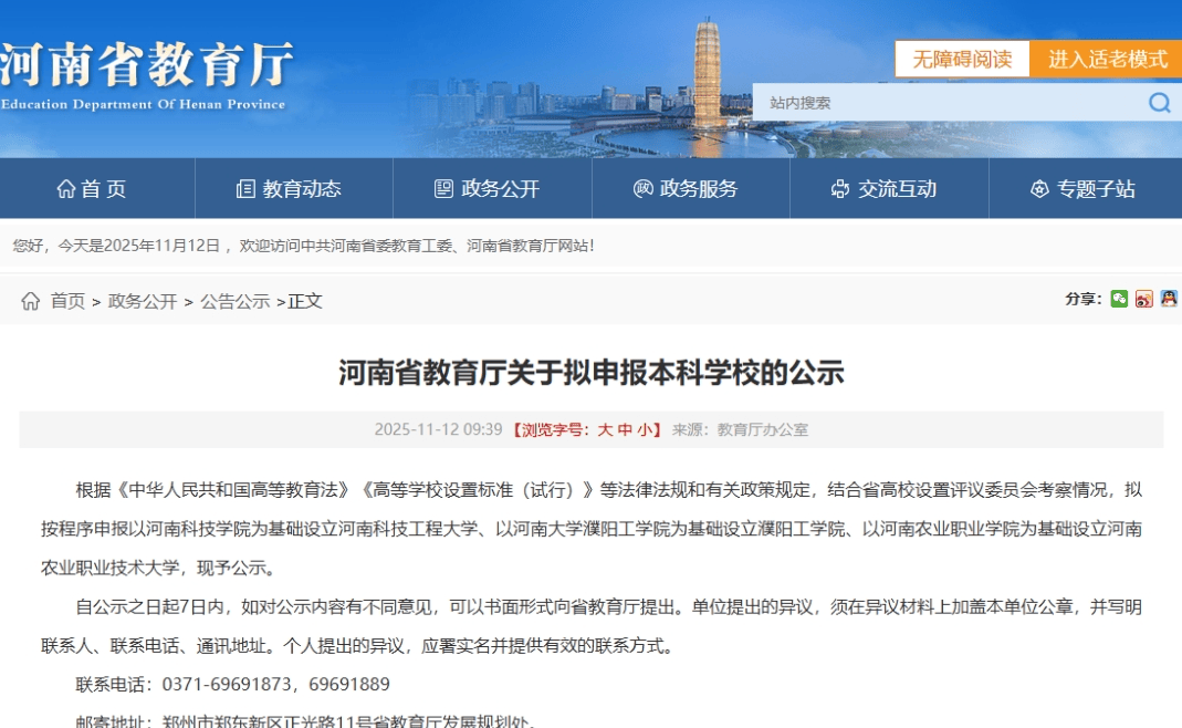 河南农业职业学院是一所公办全日制高等院校,创建于1952年,前身为河南省郑州农林中等技术学校,历经河南省中牟农业学校、河南省农业学校等发展阶段,2004年升格为高等职业院校。学校原隶属于河南省农业农村厅,2019年12月,被教育部、财政部列入第三类高水平专业群建设单位(B档),2022年转隶至河南省教育厅管理。 2023年9月12日,河南省教育厅和河南省农业农村厅决定对河南农业职业学院实行厅际共建。